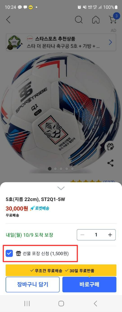 과연 축구공 선물포장은 어떻게 해서 보내줄랑가요?
