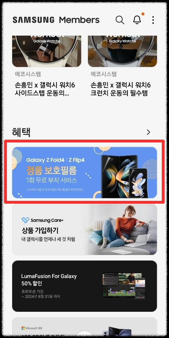 삼성멤버스 앱에 들어가서