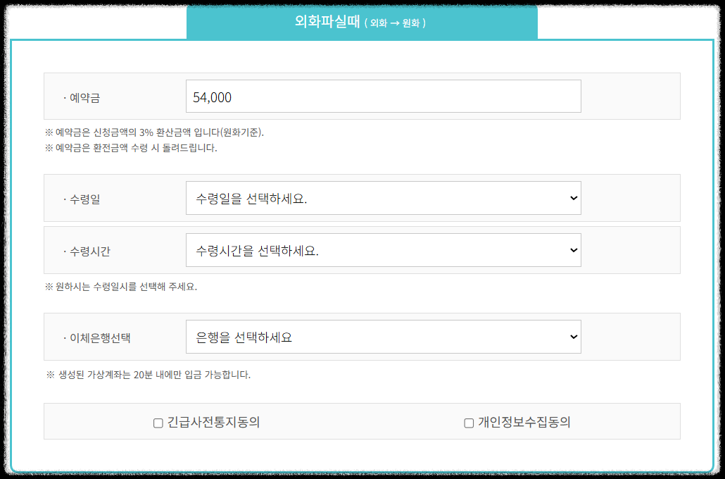 시간은 와이즈 (5~30분내외) > 인터넷뱅킹 (약2~3일) >>>>명동환전 (돈을 들고 한국가서 명동까지 가야함, 예약금까지 있음)